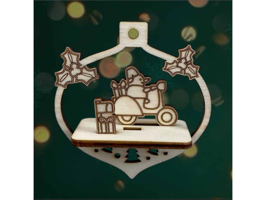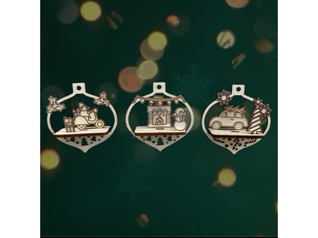 Vytvorte si čarovnú vianočnú atmosféru s originálnou drevenou 3D ozdobou, ktorá vyniká detailným laserovým gravírovaním a priestorovým efektom. Každý motív je starostlivo vyrezávaný z prírodnej brezovej preglejky a doplnený o malú platformu, na ktorej stojí postavička či dekoračný prvok.