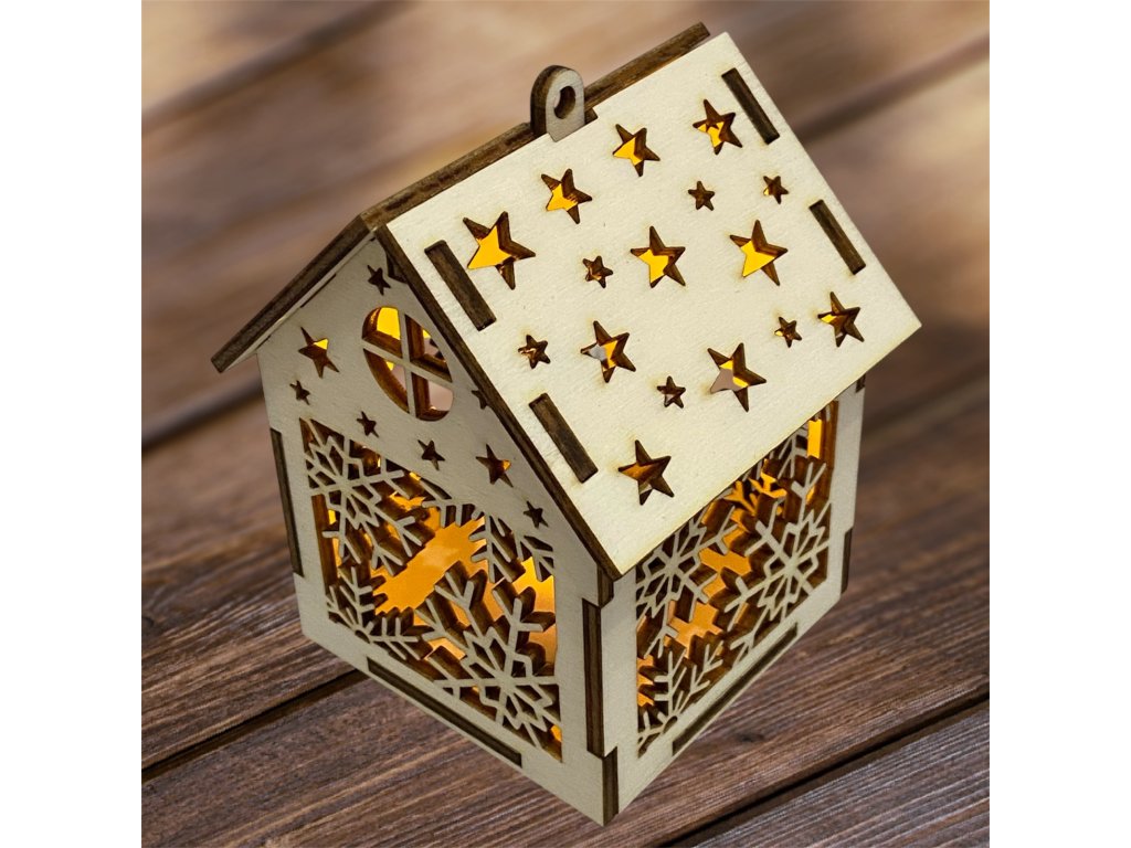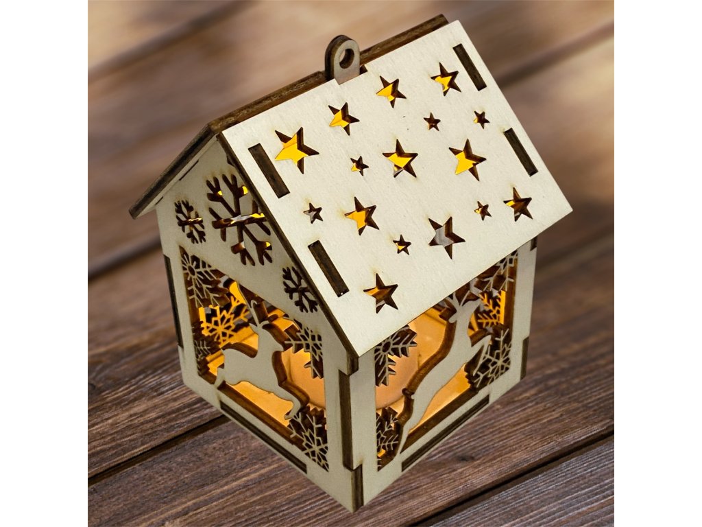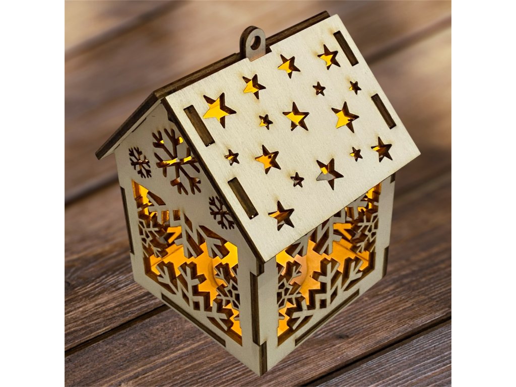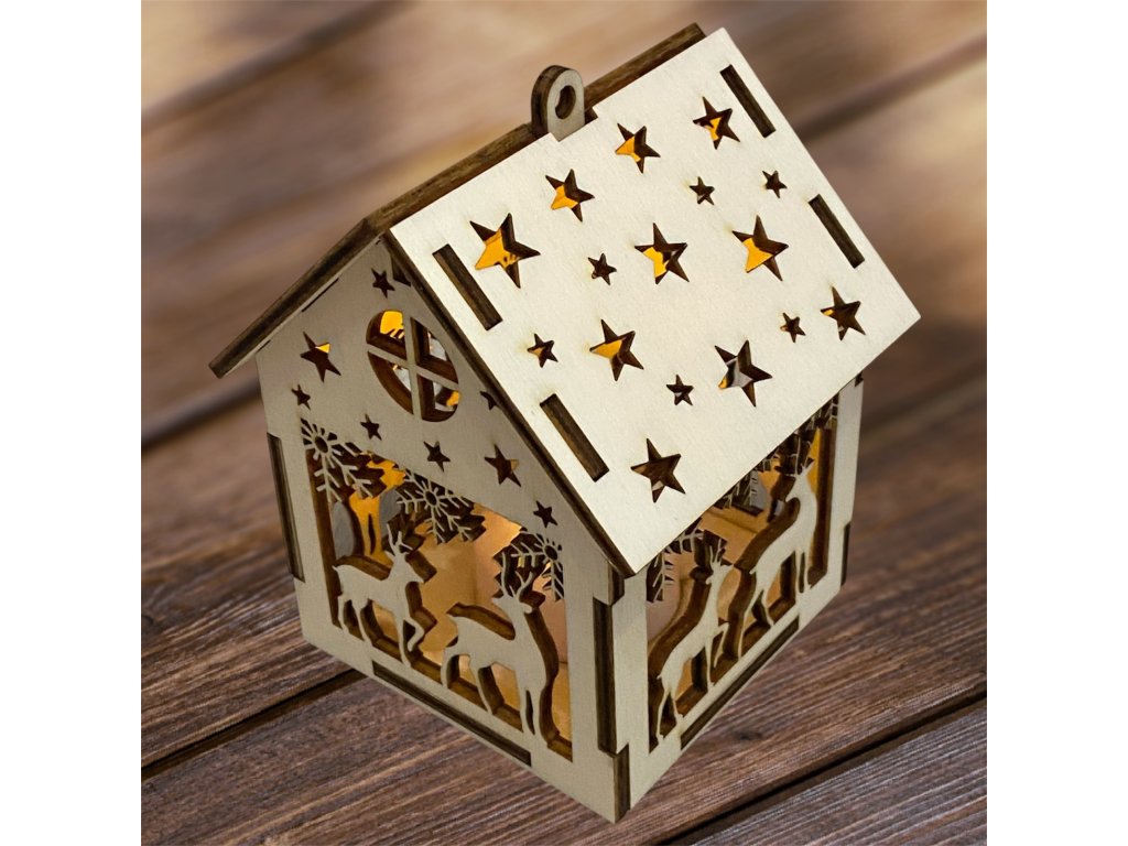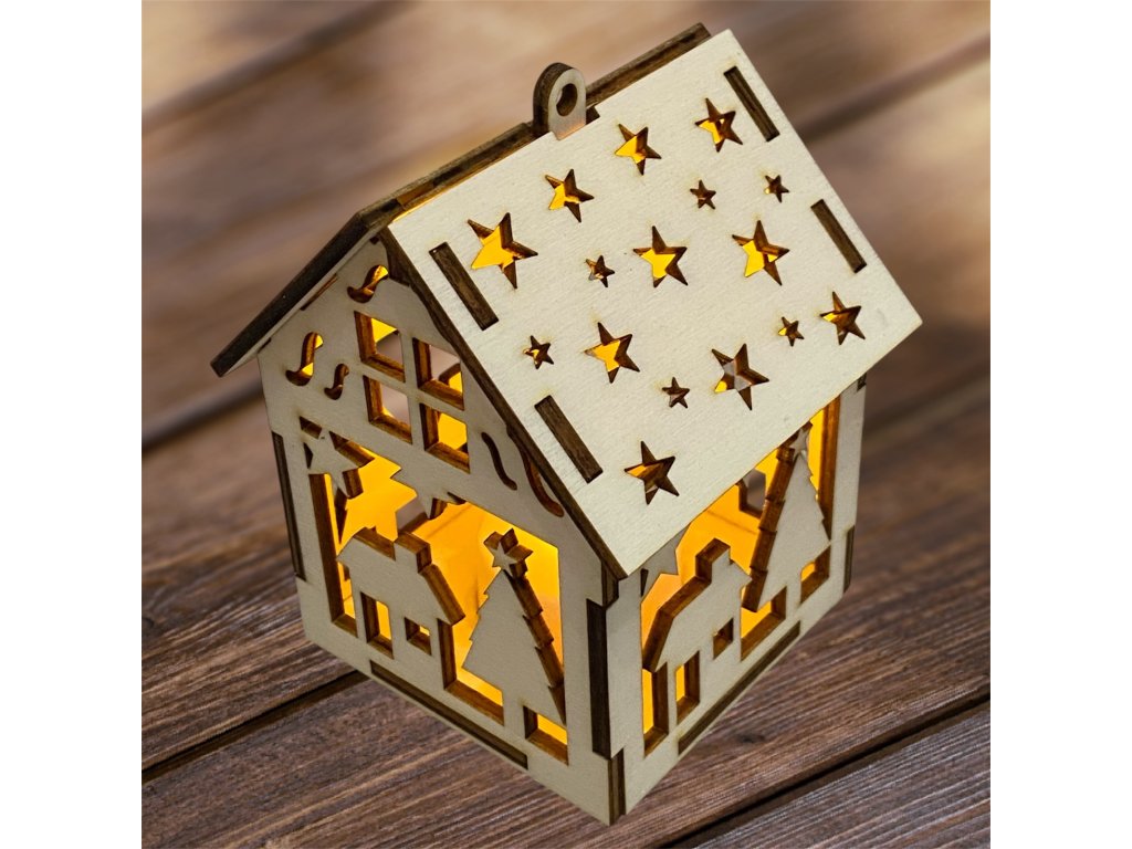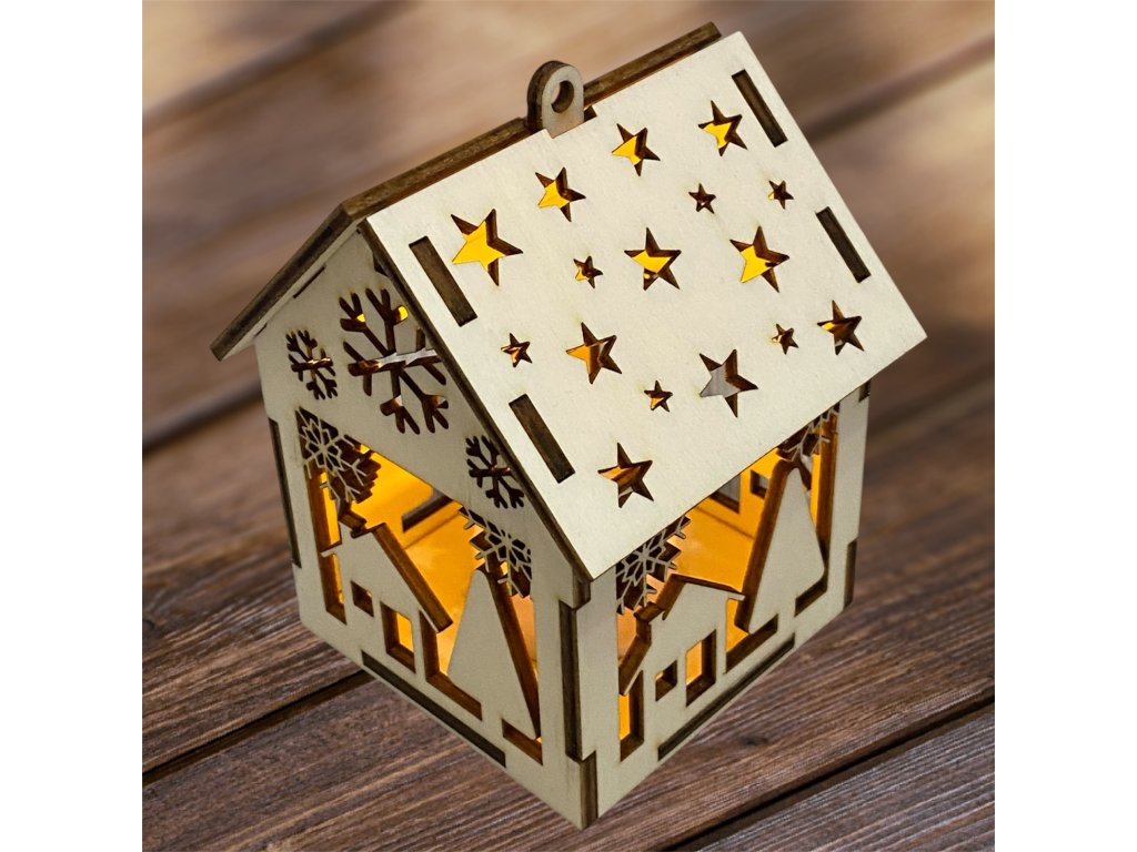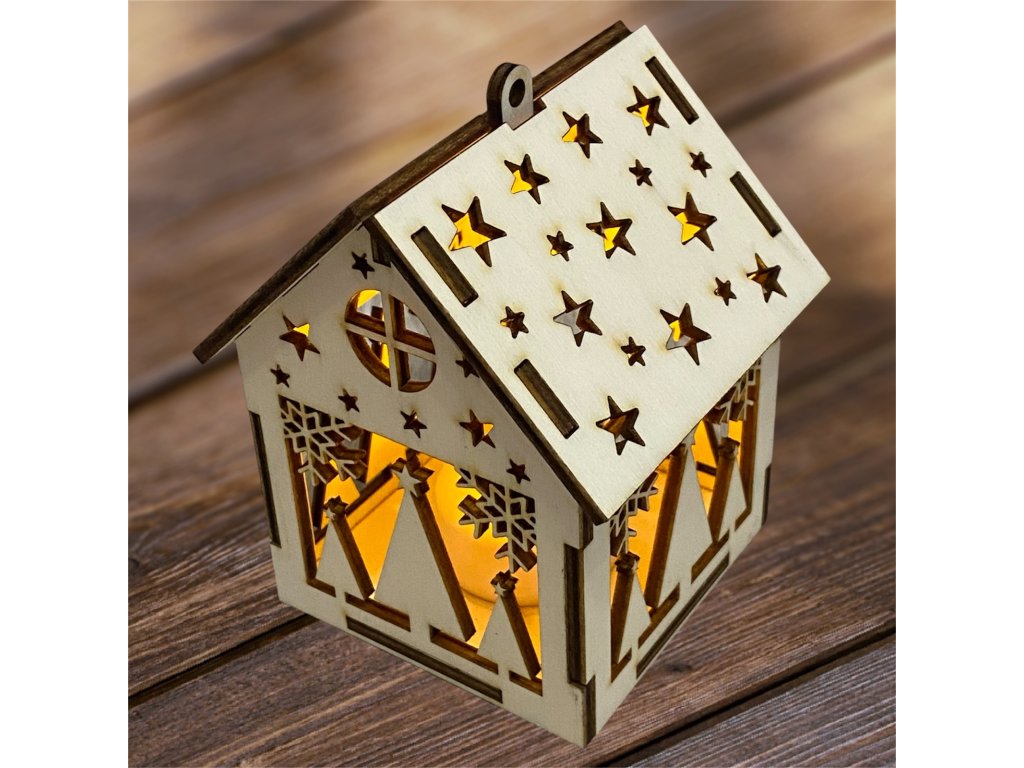 Drevený vianočný domček so svetielkom– 17 motívov