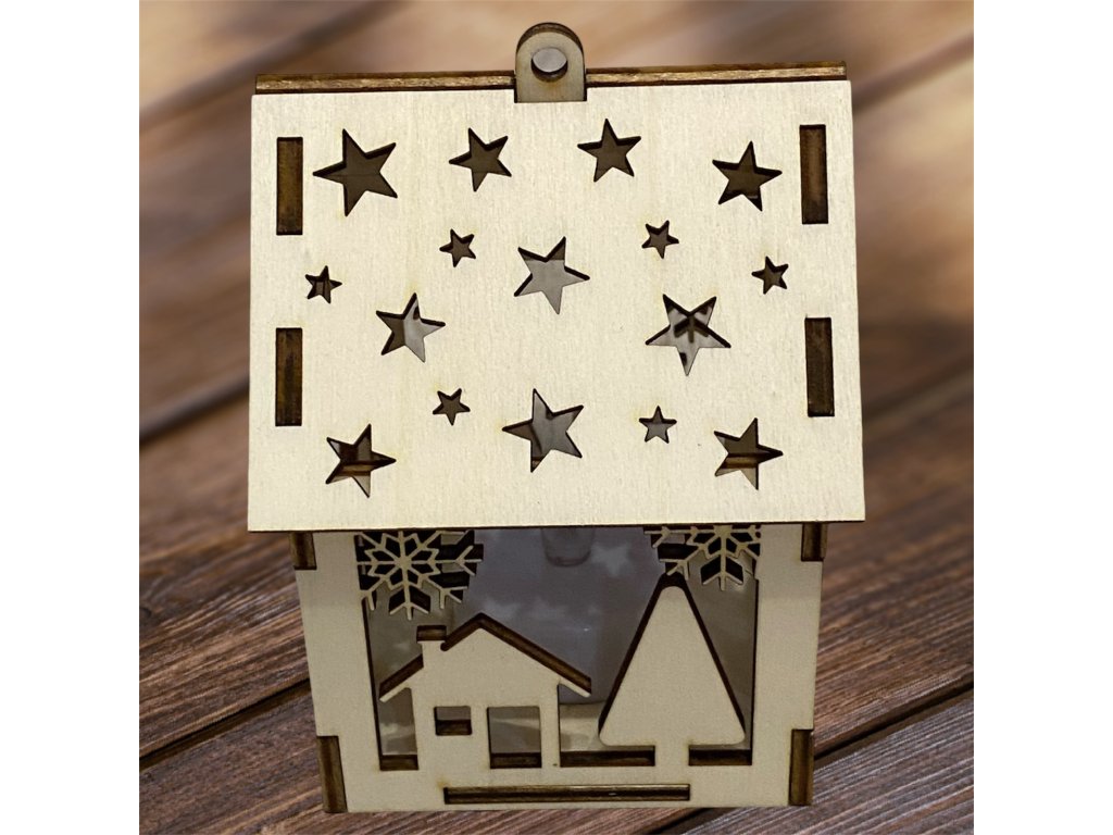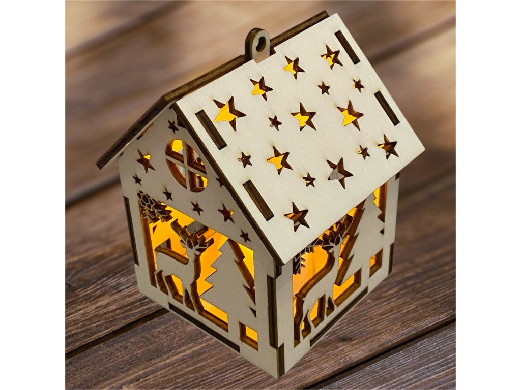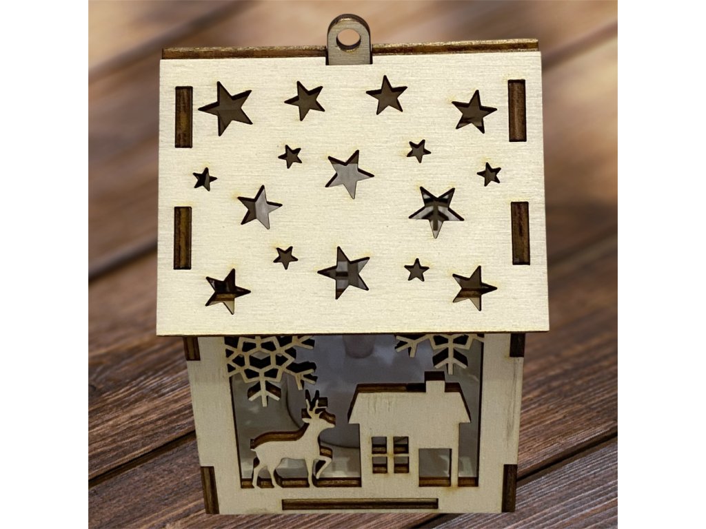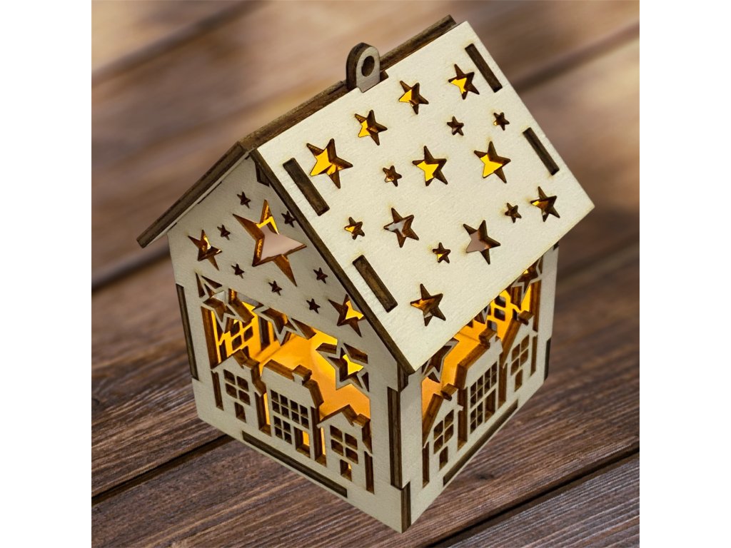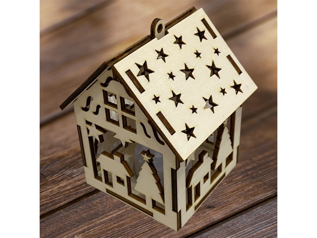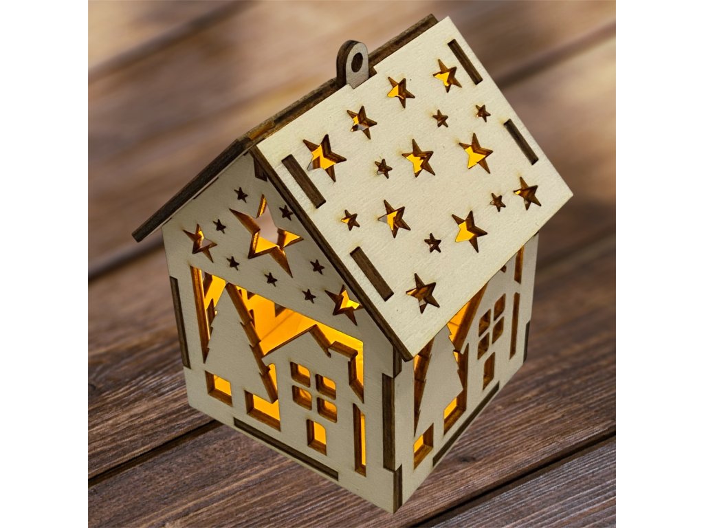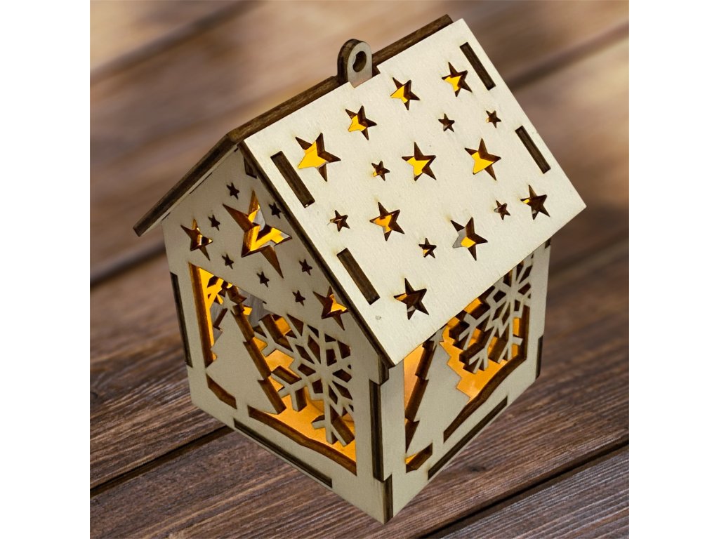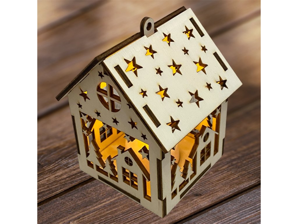 Drevený vianočný domček so svetielkom– 17 motívov