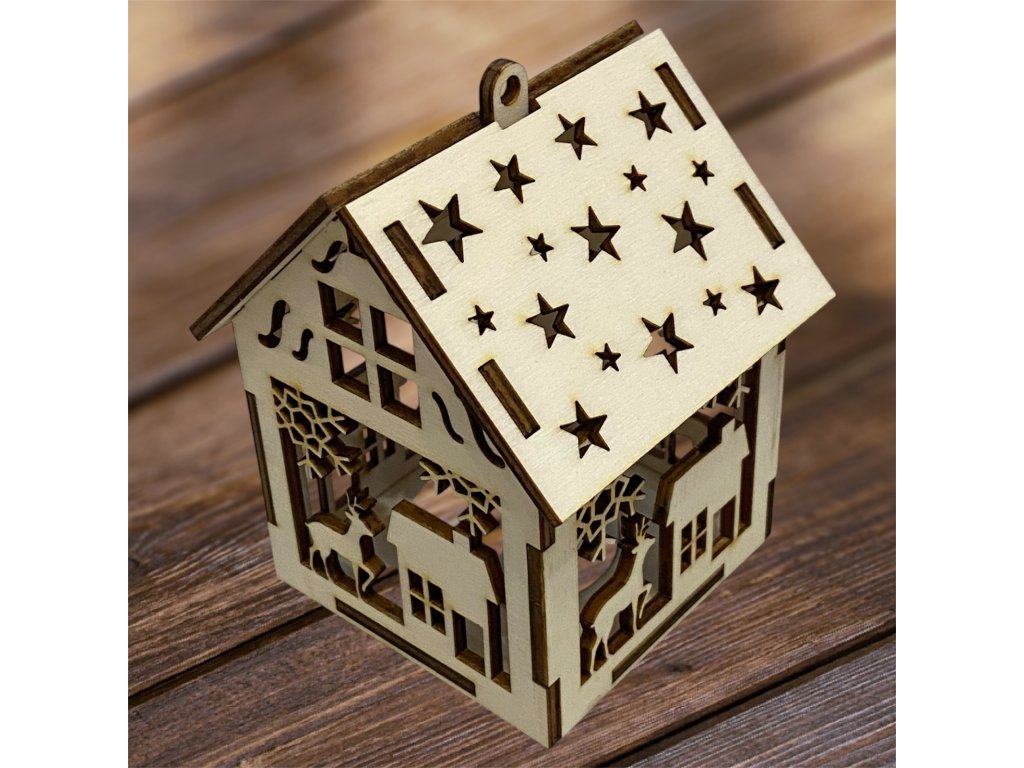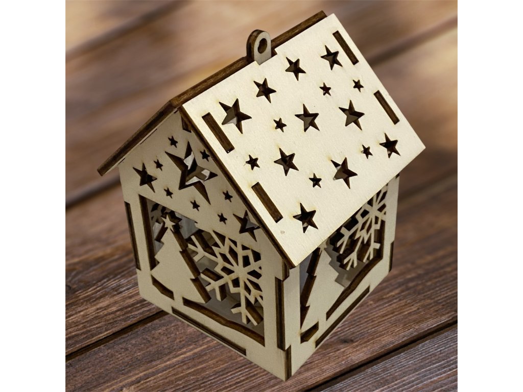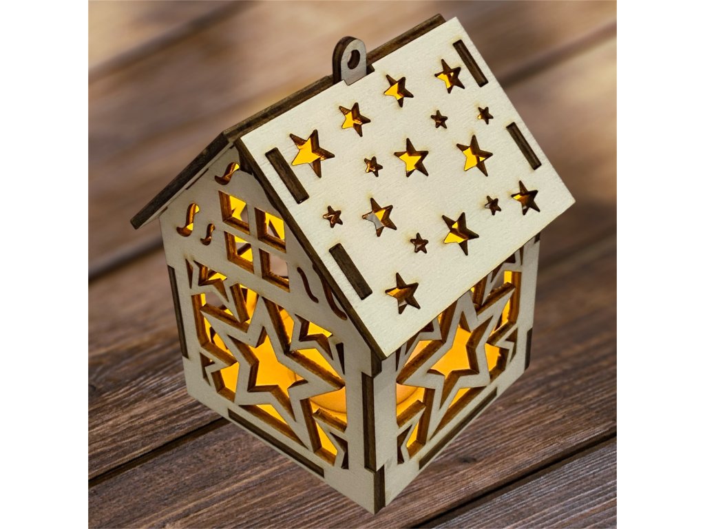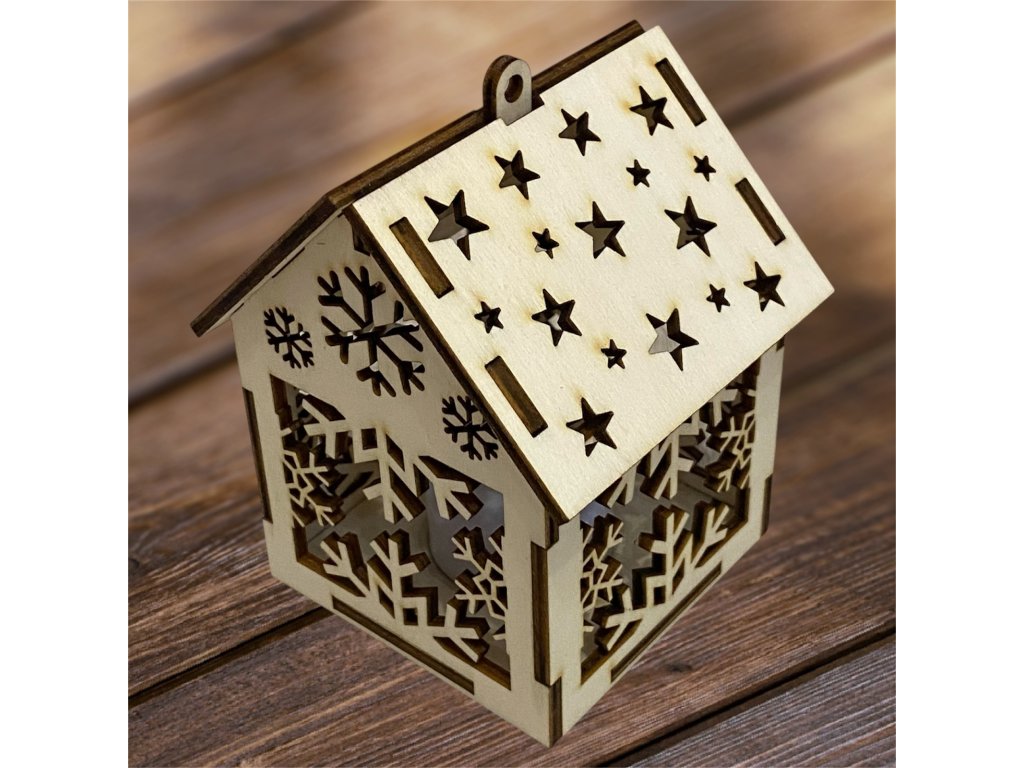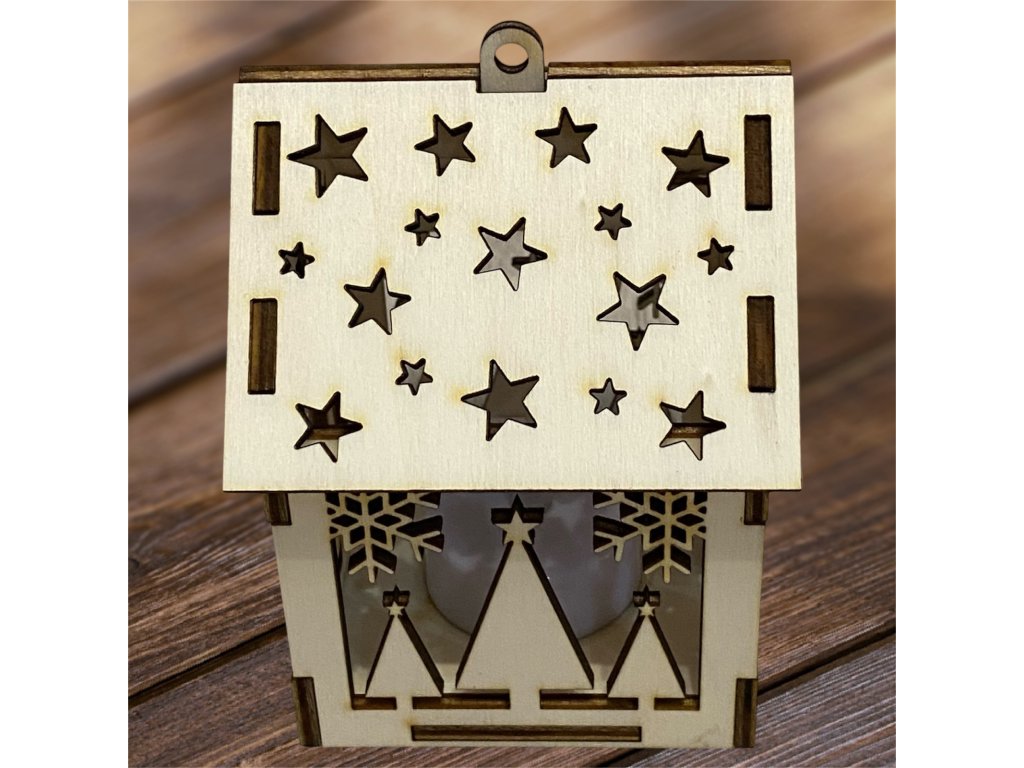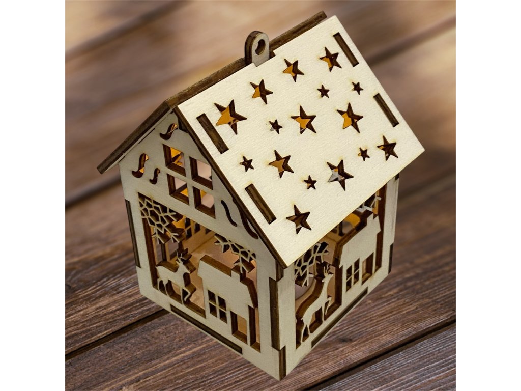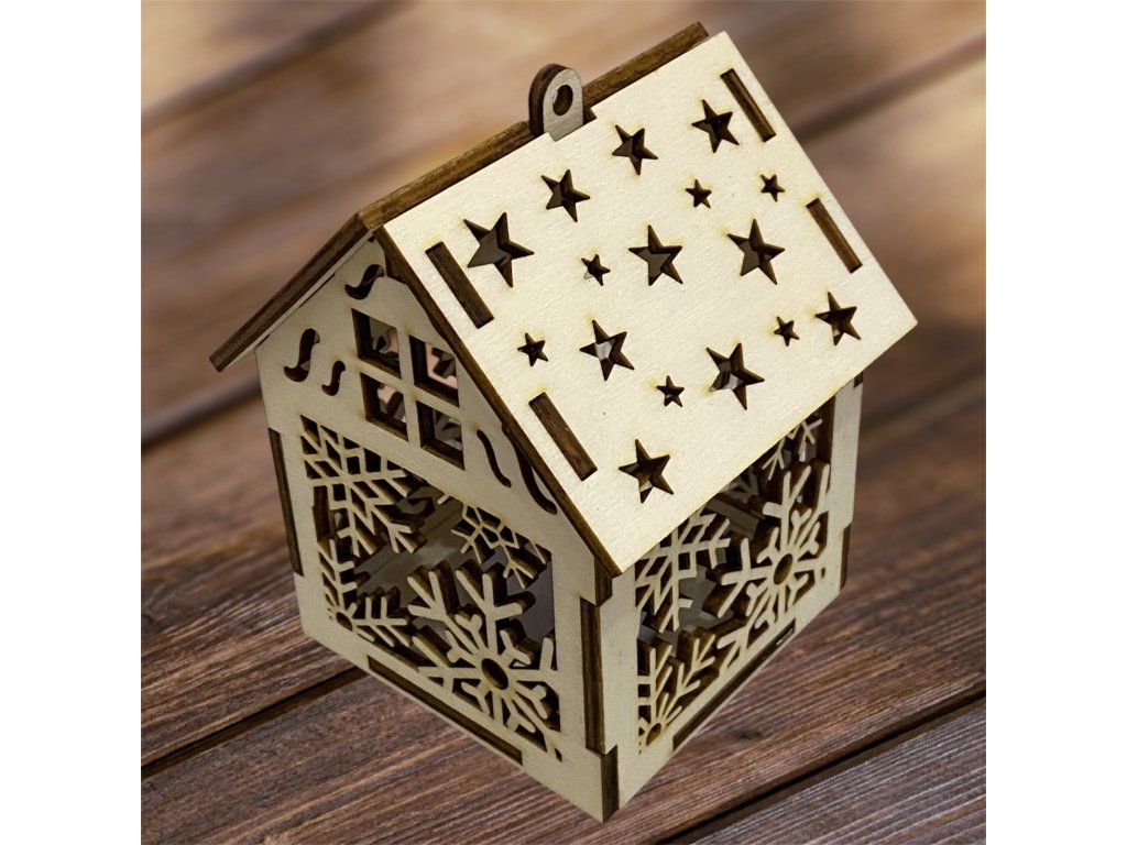 Drevený vianočný domček so svetielkom– 17 motívov
