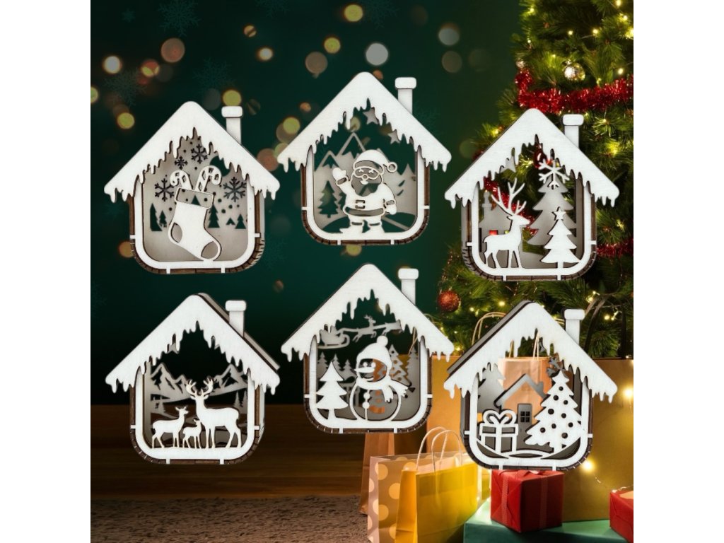 Táto siedma sada prináša kombináciu klasických aj hravých zimných motívov, ktoré prežiaria každý stromček či poličku. Domčeky sú vyrobené precíznym laserovým rezaním z brezovej preglejky, vďaka čomu vyniknú detaily a čisté línie. Biely efekt im dodáva elegantný a sviatočný vzhľad.