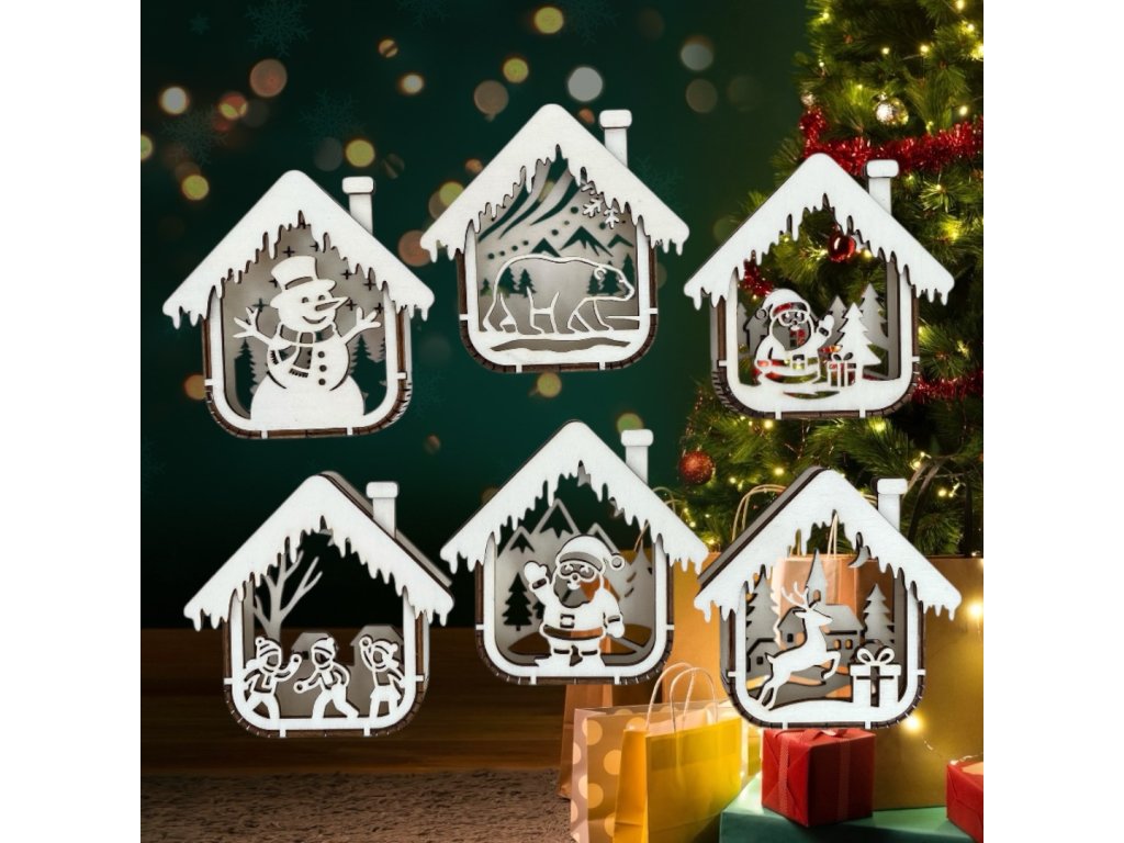 Tento set prináša nové rozprávkové motívy, ktoré dopĺňajú predchádzajúce sady domčekov. Všetky dekorácie sú vyrezané laserom z prírodnej brezovej preglejky, čo zaručuje presné detaily a jemné kontúry. Biely povrch pripomína čerstvo napadaný sneh a dodáva domčekom útulný zimný vzhľad.