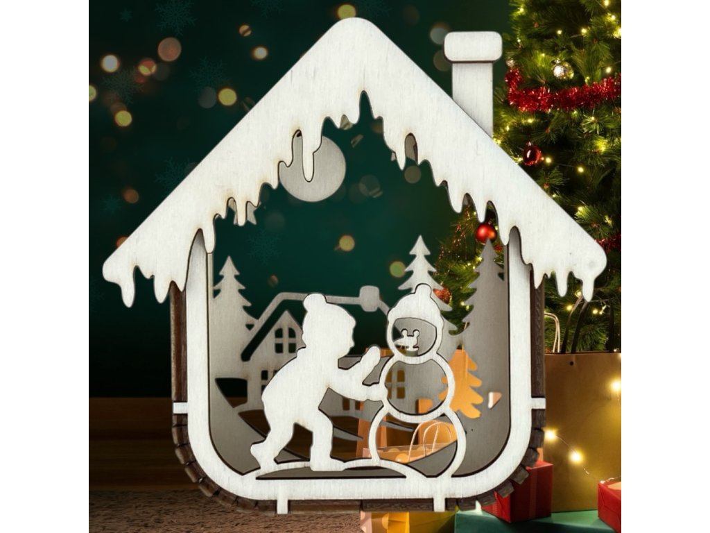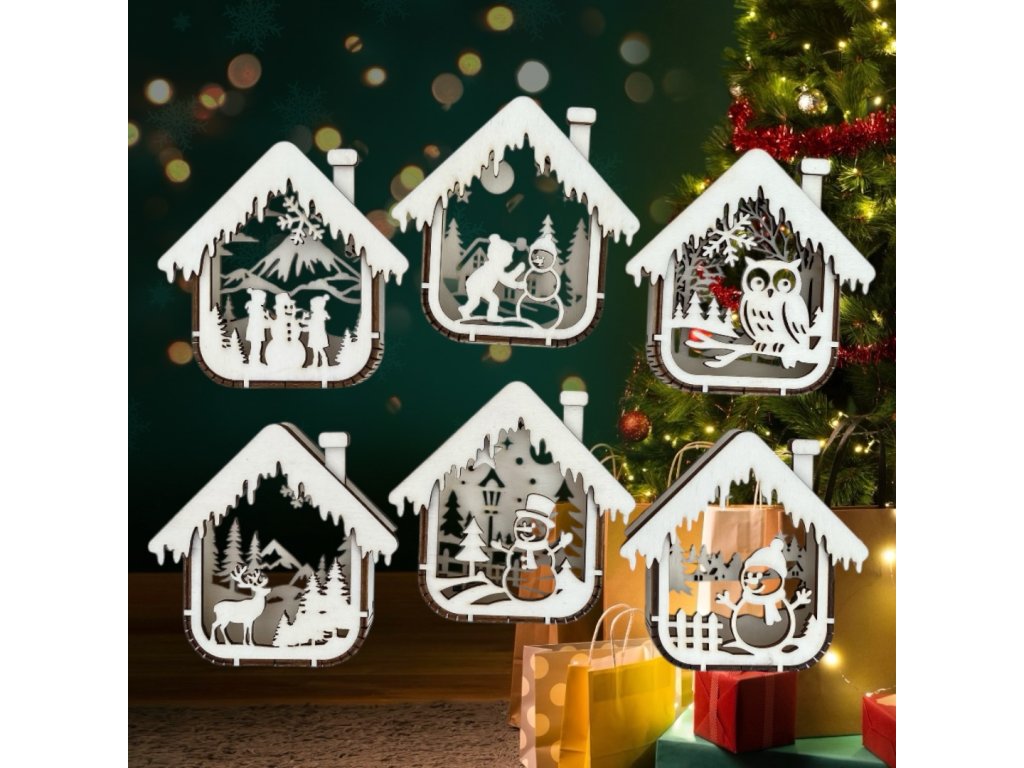 Táto sada prináša kombináciu hravých a klasických zimných motívov, ktoré navodia tú pravú sviatočnú náladu. Domčeky sú precízne vyrezané laserom z brezovej preglejky, čo im zaručuje dokonalé detaily, čisté línie a trvácnosť. Biely efekt na streche pôsobí ako čerstvo napadaný sneh, vďaka čomu dekorácie vyniknú pri každom vianočnom stromčeku či svetelnej výzdobe.
